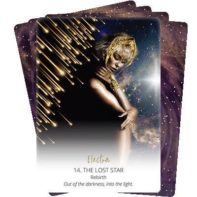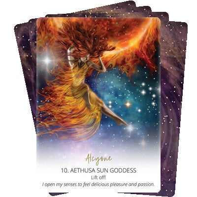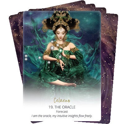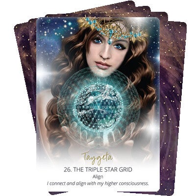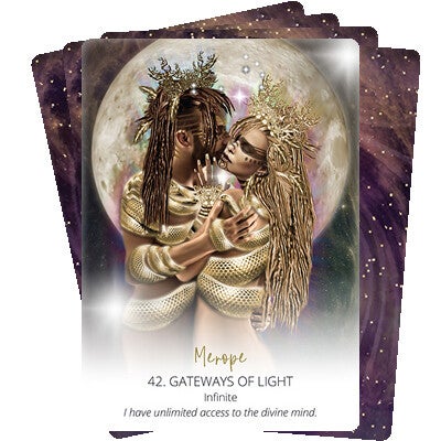 - 44 cards featuring ethereal artwork that embodies the wisdom of the Pleiades.