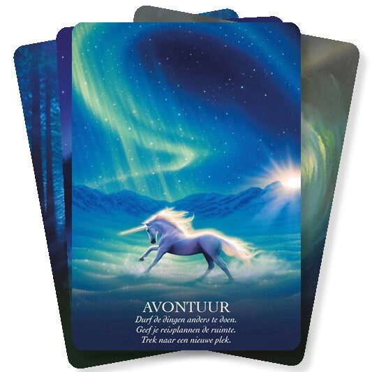 Eenhoorns zijn magische, liefhebbende wezens die ons aanmoedigen om ons leven in eigen handen te nemen en er alles uit te halen. Ze willen ons de kracht geven om uit te zoeken hoe we echt in elkaar zitten en willen dat we ontdekken dat we de magie in ons hebben om wonderen te verrichten en bergen te verzetten. Deze orakelkaarten van Deltas Uitgeverij, met bijbehorend boekje helpen je om in contact te treden met deze unieke wezens vervuld van onvoorwaardelijke liefde en het zuiverste licht. Laat je inspireren door de boodschappen van de eenhoorns en leid een leven vol vreugde, liefde, vrede en voorspoed.